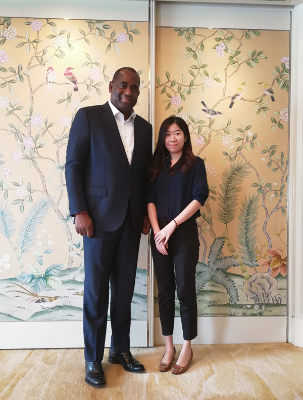 瑞豐德永集團(tuán)廣州公司總經(jīng)理?xiàng)钤亙x女士與多米尼克總理羅斯?!に箘P里特先生(Mr. Rossevelt Skerrit)合影