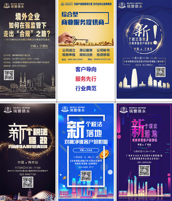 由瑞豐德永集團(tuán)組織主辦的“新個(gè)稅對(duì)高凈值人士的影響”主題11月份巡回分享交流會(huì)先后于11月14日、11月15日分別在中國(guó)上海、杭州兩地順利舉行。瑞豐德永特組專家顧問團(tuán)為兩地的企業(yè)家們從國(guó)際稅收的視角,全方位解讀新個(gè)稅+CRS新政雙重強(qiáng)監(jiān)管背景下,高凈值人士實(shí)現(xiàn)稅務(wù)合理籌劃的正確之道。