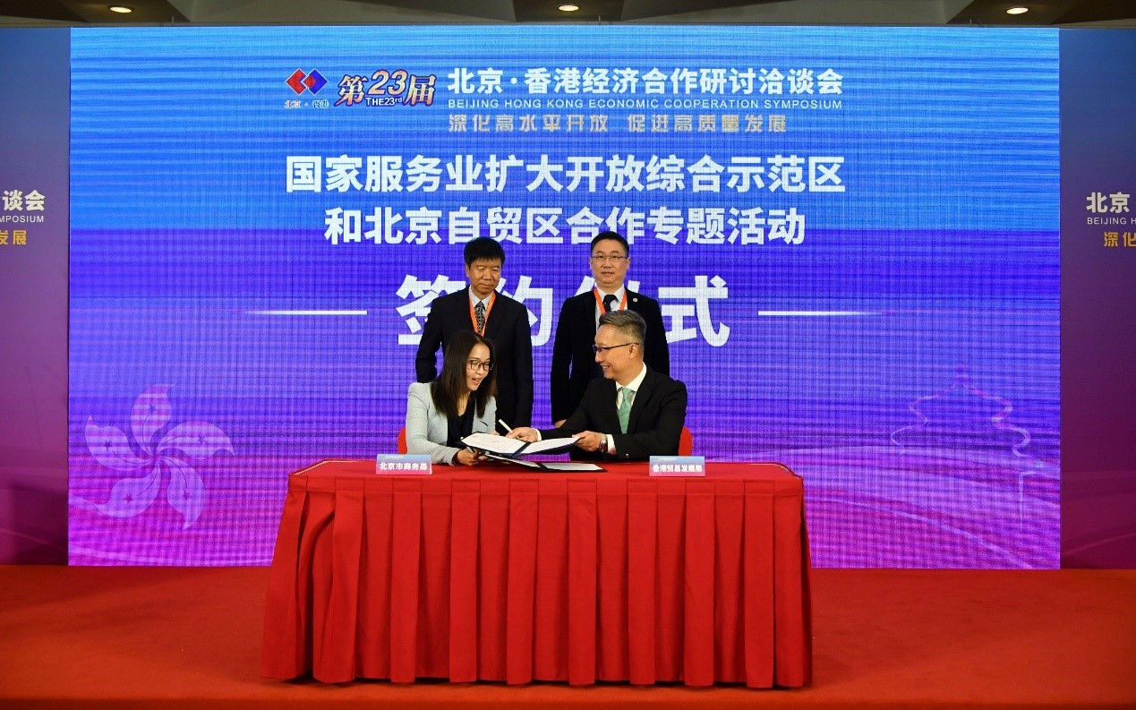 北京市商務(wù)局與香港貿(mào)易發(fā)展局簽署《深化京港服務(wù)業(yè)開放合作備忘錄》
