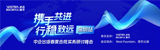 “攜手共進(jìn),行穩(wěn)致遠(yuǎn):中企出海春夏合規(guī)實(shí)務(wù)研討峰會(huì)”活動(dòng)于今日5月28日下午在深圳福田香格里拉酒店順利舉辦。本次峰會(huì)由Vistra卓佳瑞豐發(fā)起和主辦,聯(lián)合West Fountain、競(jìng)天公誠協(xié)辦,吸引了逾百位來自華南區(qū)域的企業(yè)高管報(bào)名參會(huì)。
