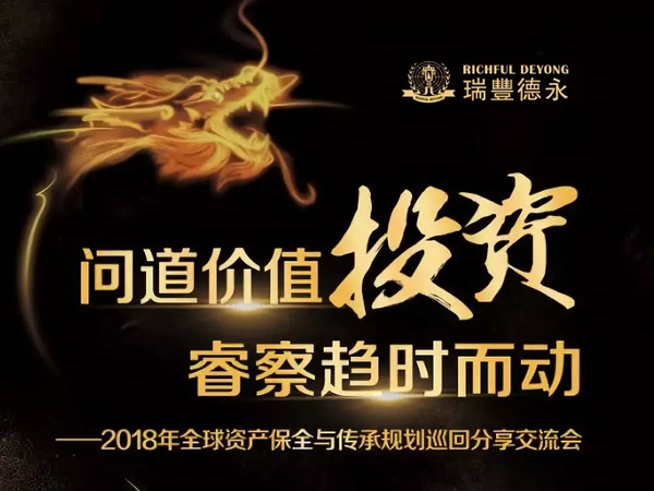 由瑞豐德永集團組織主辦的“問道價值投資,睿察趨時而動——2018資產(chǎn)保全與傳承規(guī)劃”主題巡回分享交流會相繼在中國杭州、寧波、上海和大連四地舉辦。