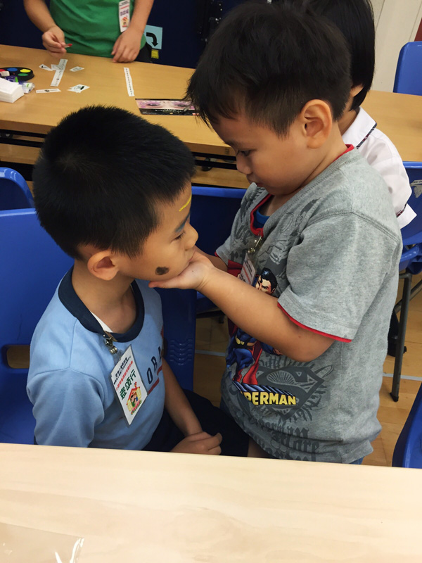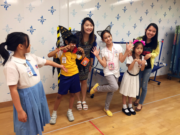 此次活動(dòng)小朋友非常踴躍參與, 一共有30多位小朋友參加, 4-5個(gè)小朋友為一組, 一位小朋友作“鬼”, 其余小朋友為“鬼”的面上化妝,然后在身上配置裝飾, 義工們?cè)谝慌越o小朋友出主意。亦有義工主動(dòng)做模特兒, 由義工團(tuán)隊(duì)扮作“鬼”提供給小朋友化妝。有的小朋友變成可愛(ài)小天使, 有的變成得意小魔怪, 亦有變成漂亮鬼新娘。