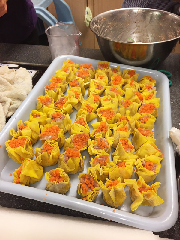 率先完成的就是點(diǎn)心中最有代表的燒賣,配上較為健康的餡料和紅蘿卜粒作點(diǎn)綴,非常適合長者們品嘗。