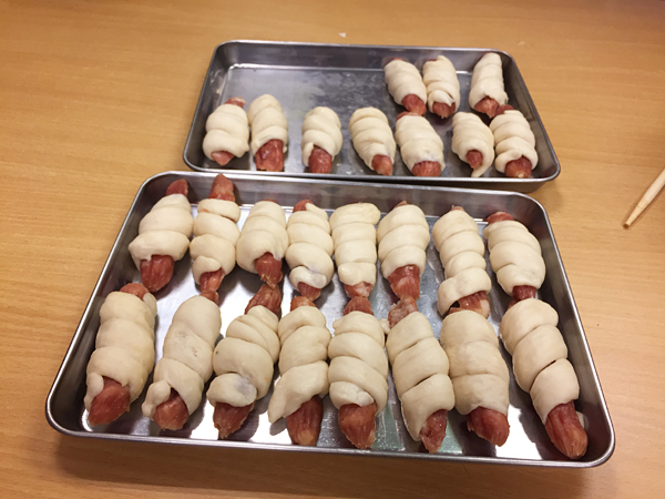 然后就是臘腸卷,人手搓成的面團(tuán)包上臘腸,只要放入蒸籠就大功告成。