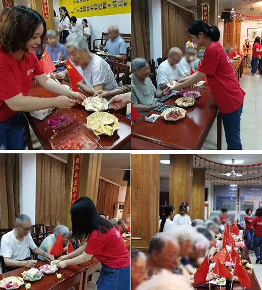 集團(tuán)杭州公司的員工志愿者們提前為老人們準(zhǔn)備了多種新鮮瓜果、養(yǎng)生干果和食品,根據(jù)每位老人不同的身體狀況和口味喜好,暖心地送到他們手邊。