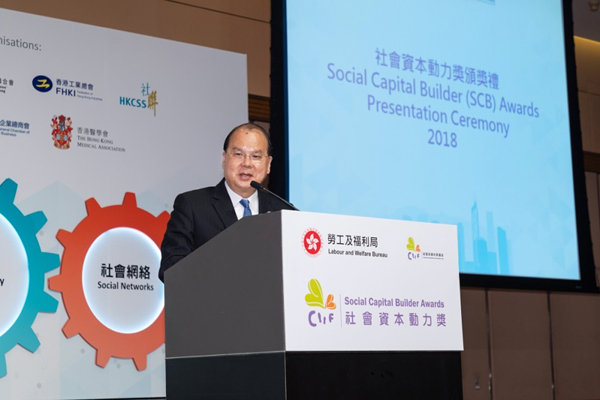 壓軸環(huán)節(jié)為社會資本動力獎頒獎禮,由政務(wù)司司長張建宗先生,GBS,JP蒞臨主禮,表揚卓越基金計劃、協(xié)作伙伴,以及對建立社會資本有重要貢獻的機構(gòu)和人士。