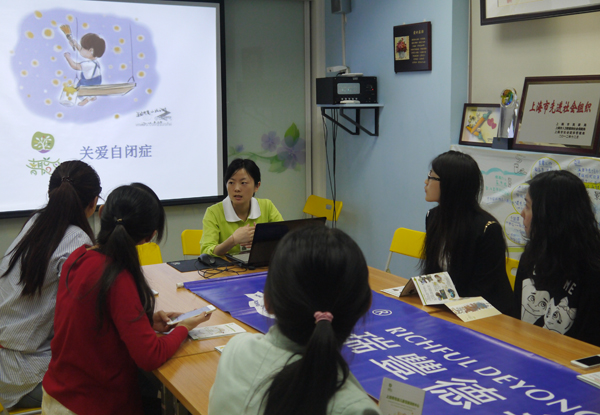 我們來到機構會議室,熱情的李老師為我們介紹了自閉癥這種疾病 ,自閉癥這種病癥病因不清,無法篩查無法預防,到1-2歲時才有明顯癥狀,不過68:1的發(fā)病率還是讓我們吃了一驚,這表示“星星們”就在離我們不遠的地方。大家認真聽取了自閉癥早期訓練的好處,以及社會、家庭對自閉癥群體包容、引導、教育的責任,呼吁全社會都來關愛這個群體。