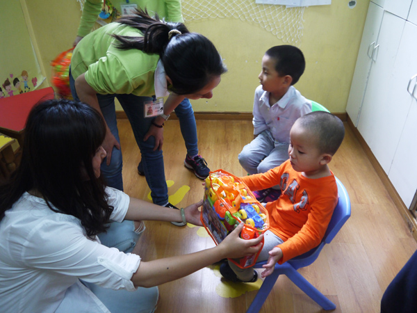 最后我們贈送給小朋友我們特意準備的玩具,孩子們表現(xiàn)出的興奮和正常的小朋友幾乎沒有什么差別,甚至還有孩子認出了“熊二”,好象“星星”真的對我們眨了眨眼睛……