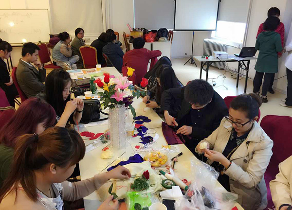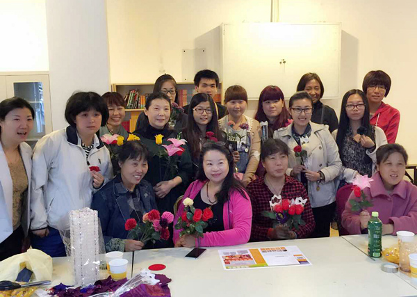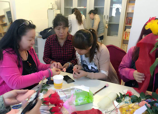 兩個小時的公益活動很快就結(jié)束了,看著自己親手做出來的漂亮花兒大家都很開心也很滿足,同時也希望這些花兒可以給殘疾人媽媽帶去歡樂。