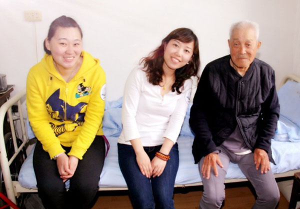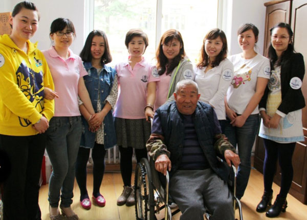 給我印象最深的是已經(jīng)住在這里十年的韓爺爺,他是三無老人而且身患?xì)埣玻喴涡袆?dòng),可是他非常喜歡說話,給我們講了好多老大連的故事,至今還讓我們津津樂道。