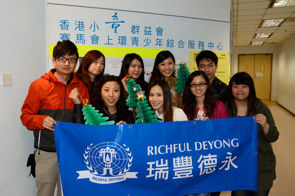 2013年,瑞豐德永集團(tuán)香港總部攜手慈善機構(gòu)開展了一系列慈善活動。12月份,瑞豐德永集團(tuán)香港總部的員工去看望了香港小童群益會的小朋友,為他們帶去歡笑和溫暖。