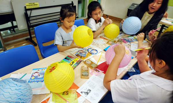 小朋友們專注地為燈籠加上自創(chuàng)的手繪圖案,為自己的燈籠添上美麗的色彩。
