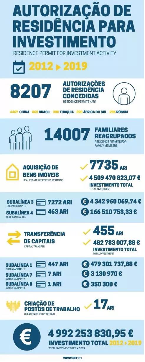 數(shù)據(jù)顯示,截至2019年12月31日,累計(jì)有8207組家庭申請葡萄牙黃金居留許可,在所有申請葡萄牙黃金居留許可的投資人中,來自中國的投資者依然是主力軍,共有4467組中國家庭申請葡萄牙黃金居留許可,占比約為54%,可見中國投資者非常青睞葡萄牙黃金簽證。