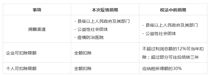 為了企業(yè)和個人更好地制定所得稅稅收計劃,我們將本次疫情期間特殊捐贈和稅法中的捐贈對比列示如下供您參考: