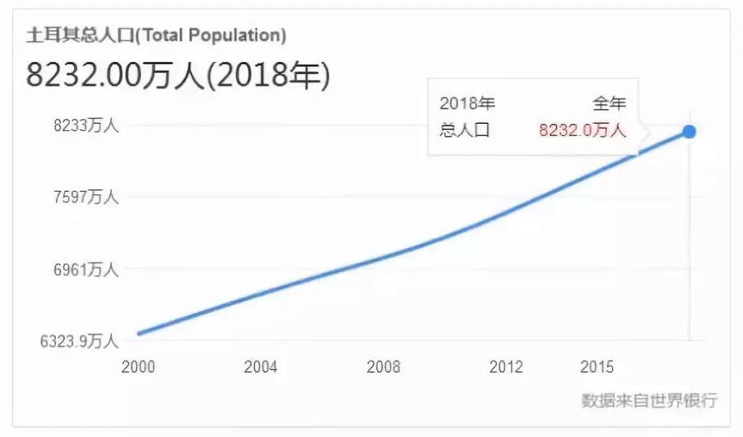 根據(jù)土耳其統(tǒng)計局(TurkStat)數(shù)據(jù),截止2018年年底土耳其人口達(dá)到8232萬。土耳其的人口保持每年1.5%的增長率,預(yù)計2023人口將達(dá)到8690萬,到2040年,突破1億30萬!