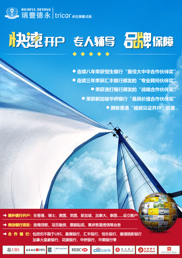 隨著世界銀行局勢(shì)的收緊,國(guó)際反洗錢規(guī)定和眾多多邊協(xié)定的簽訂,開設(shè)境外銀行賬戶變得越來(lái)越困難,瑞豐德永擁有多年開戶經(jīng)驗(yàn)及與香港銀行有良好合作關(guān)系,香港公司及離岸公司最快可以做到一兩星期就可以成功開戶!這不僅僅能夠給高凈值人士帶來(lái)多國(guó)家多地區(qū)的開戶選擇,更能為其提供全面的開戶前期審核指導(dǎo)服務(wù),使大家境外銀行開戶更高效。