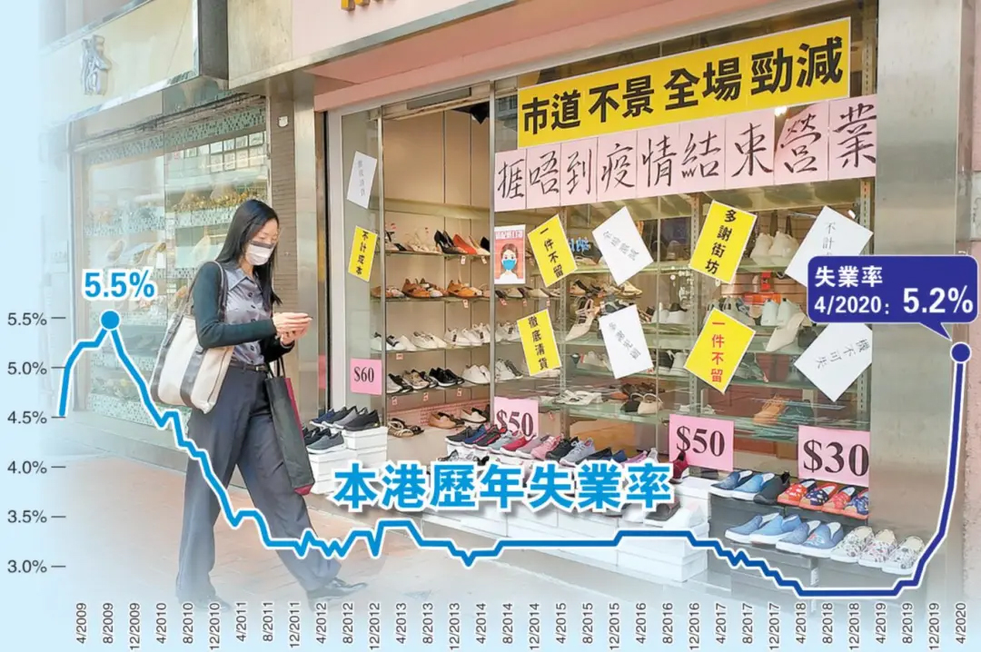 受疫情影響,香港失業(yè)率連升7個(gè)月,升至逾10年高位。香港特區(qū)政府統(tǒng)計(jì)處5月19日下午公布的數(shù)據(jù)顯示,香港經(jīng)季節(jié)性調(diào)整的失業(yè)率,由1月至3月的4.2%,上升至2月至4月的5.2%,超過(guò)10年來(lái)高位。