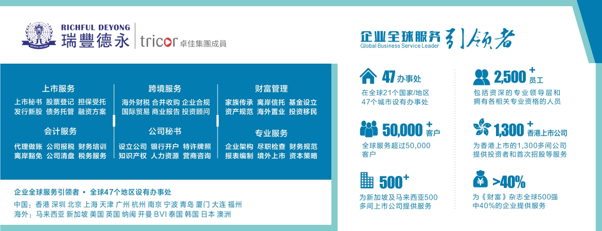 瑞豐德永集團直接代辦全球近30個屬地的離岸公司注冊。