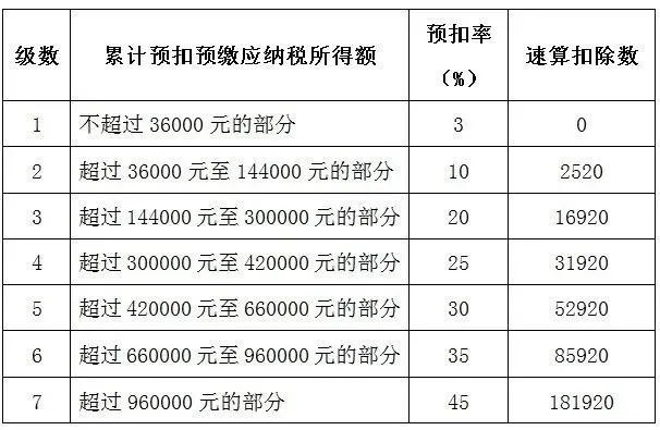 無免稅額的個人所得稅稅率表