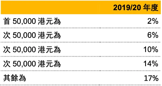 個人所得稅在香港叫薪俸稅,可以按累進稅率或者標準稅率計算,以繳納較少者為準。標準稅率以凈收入總額的15%計算,累進稅率按不同稅階計算↓