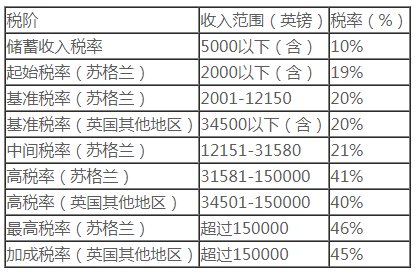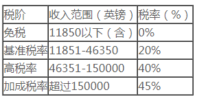 般情況下,英國稅收居民的個人所得稅稅率如下: