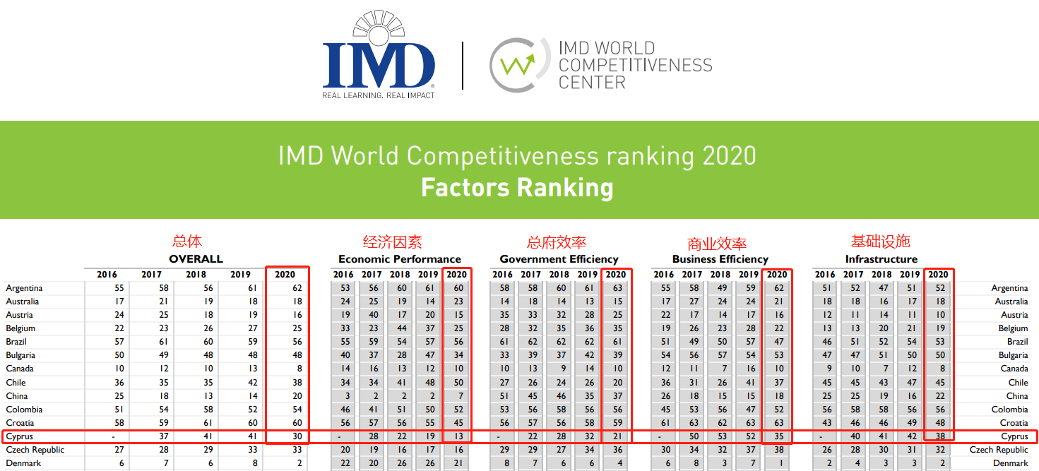 2020年世界競(jìng)爭(zhēng)力中心報(bào)告中被評(píng)為最進(jìn)步的國(guó)家,塞浦路斯目前在63個(gè)國(guó)家中排名第30位,而2019年為41個(gè),排名上升11位,在稅收政策方面,該國(guó)排在第13位。