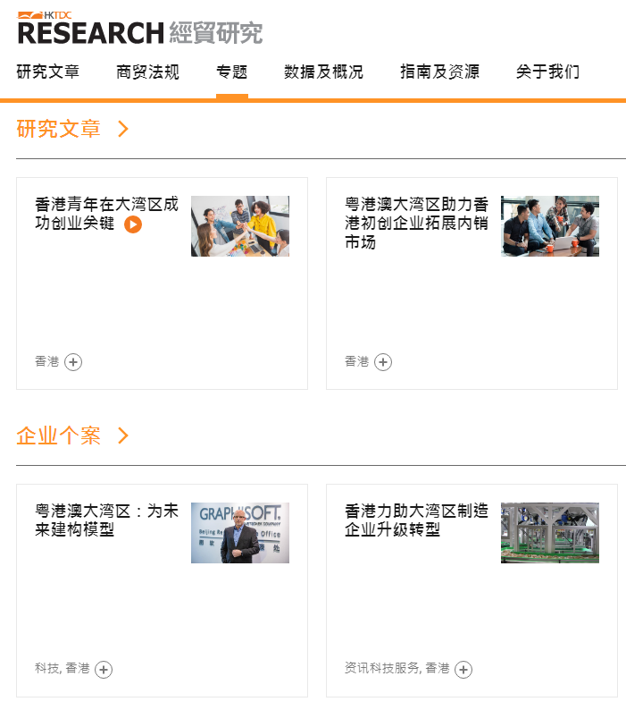香港貿(mào)發(fā)局官網(wǎng)會(huì)不定期更新個(gè)案研究,幫助港企、香港青年更加了解粵港澳大灣區(qū)。