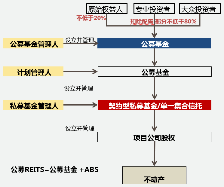 我國(guó)的基礎(chǔ)設(shè)施REITs采用“公募基金+ABS”的形式,由公募基金投資以基礎(chǔ)設(shè)施為底層資產(chǎn)的ABS。