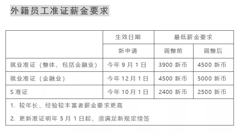 此外,新加坡政府還對(duì)金融業(yè)設(shè)立最低薪金門(mén)檻,2020年12月份開(kāi)始,對(duì)外國(guó)準(zhǔn)證持有者的薪金調(diào)高至5000新幣。