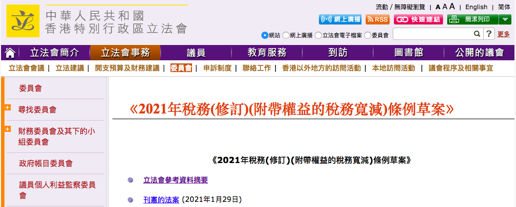 1月29日,香港特區(qū)政府在憲報(bào)刊登《2021年稅務(wù)(修訂)(附帶權(quán)益的稅務(wù)寬減)(TaxConcessions for Carried Interest)條例草案》(《條例草案》),就基金管理公司及雇員獲發(fā)的附帶權(quán)益,豁免全部利得稅和薪俸稅,且于2月3日在立法會(huì)進(jìn)行了首讀。