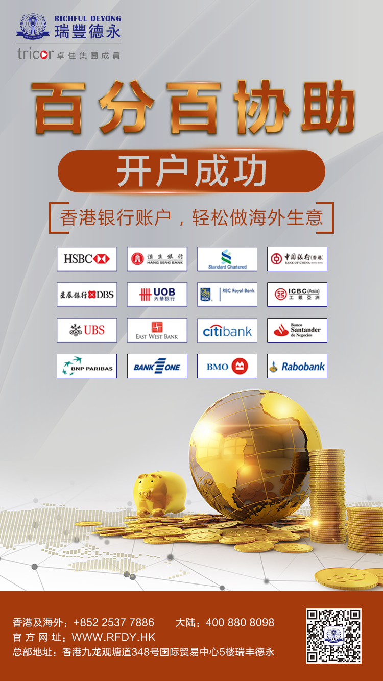瑞豐德永擁有多年開戶經(jīng)驗(yàn)及與香港銀行有良好合作關(guān)系,香港公司及離岸公司最快可以做到一兩星期就可以成功開戶,如有需要可與我們?nèi)〉寐?lián)系。