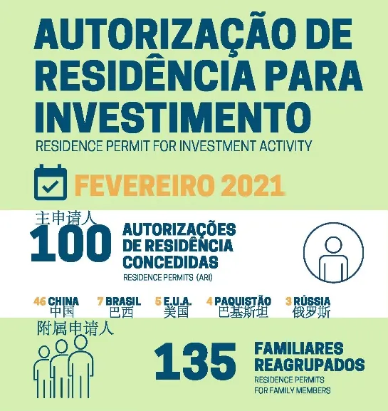 根據(jù)葡萄牙移民局(SEF)發(fā)布了2021年2月分黃金居留許可數(shù)據(jù),2月份葡萄牙SEF向235位申請者(100位投資人+135位家屬)授予了黃金居留許可,相比2021年1月份獲批的135位申請者(55位投資人+80位家屬)環(huán)比增長了82%。