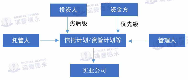 信托計劃/資管計劃等還可以做成結(jié)構(gòu)化產(chǎn)品,即管理人根據(jù)投資者不同的風險偏好對受益權(quán)進行分層配置,使具有不同風險承擔能力和意愿的投資者,通過投資不同層級的受益權(quán)來獲取不同的收益,并承擔相應風險,如下圖所示: