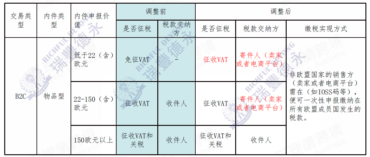 歐盟針對(duì)非歐盟來源的B2C包裹征收VAT規(guī)則的變化
