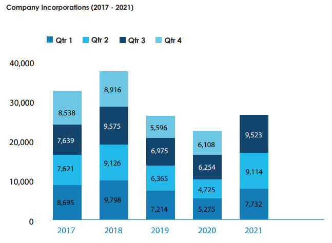 在全球稅務(wù)規(guī)范的要求下,離岸公司BVI經(jīng)歷著CRS和經(jīng)濟(jì)實質(zhì)的雙重打壓,在此情況下,不少人認(rèn)為BVI公司差不多要涼涼了。但是,根據(jù)近期BVI金融服務(wù)委員公布的2021年第三季度簡報數(shù)據(jù),BVI公司前三季度新增公司注冊數(shù)量明顯上升。