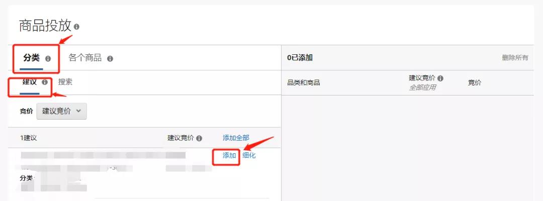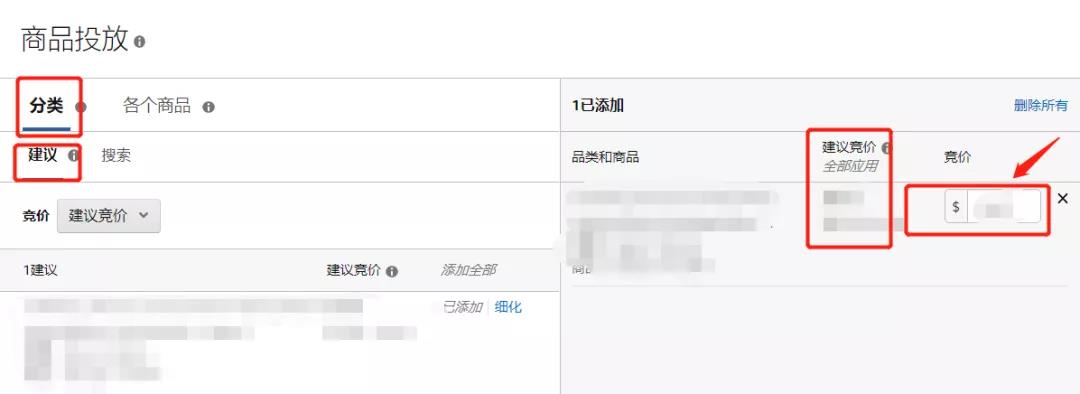 ①分類:在“分類”選項(xiàng)卡中,您可以根據(jù)與商品的相關(guān)性投放相應(yīng)的推薦品類。按照建議競價(jià),設(shè)置合理的價(jià)格。