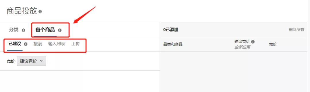 ②各個(gè)商品:在“各個(gè)商品”選項(xiàng)卡中,您可以投放與您廣告中的商品類似的推薦商品。您還可以在“搜索”字段中搜索特定商品。