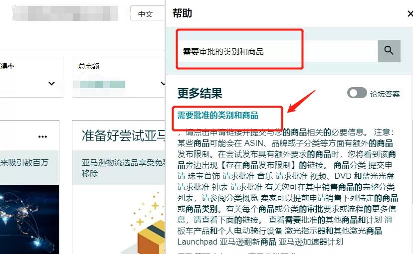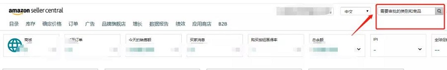 在亞馬遜賣家后臺(tái)搜索框中輸入——需要審批的類別和商品。