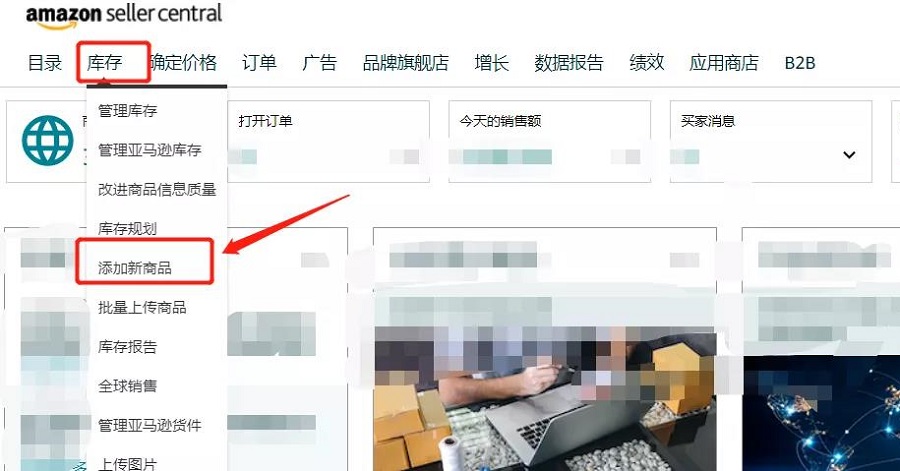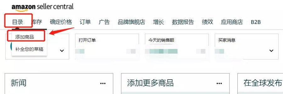 打開亞馬遜賣家后臺(tái),點(diǎn)擊添加新商品按鈕,這邊有兩種渠道方式: