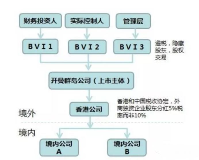 我們舉個(gè)簡(jiǎn)單的例子來(lái)說(shuō)明,境內(nèi)公司A現(xiàn)擬香港上市,其在境外(開曼群島)設(shè)立離岸公司,該公司今后即作為上市主體,首先,公司股東必須向有關(guān)部門申報(bào)及備案它于境外設(shè)立的BVI公司,隨后股東持有的境內(nèi)股權(quán)裝入BVI公司,這樣就將擬上市公司的企業(yè)性質(zhì)由原來(lái)的內(nèi)資企業(yè)變更為外商獨(dú)資企業(yè)。
