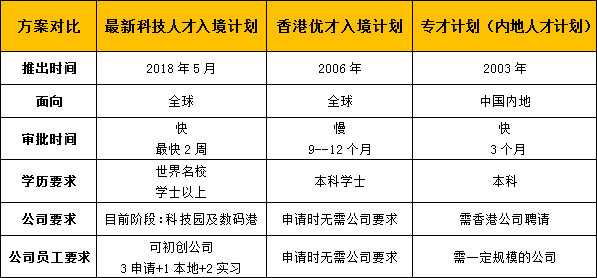 三、科技優(yōu)才,香港優(yōu)才、香港專才方案對比