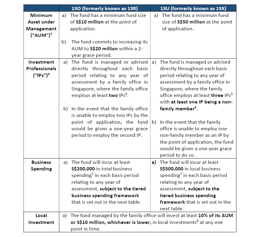 從2022年4月18日(含)起,向MAS提交的所有由家族辦公室(無(wú)論是受豁免為家庭管理資產(chǎn)的資產(chǎn)管理公司或是被同一個(gè)家族成員所控制的家族辦公室)直接管理或建議的基金申請(qǐng),都必須滿(mǎn)足以下條件以符合S13O/S13U稅收優(yōu)惠計(jì)劃的資格。