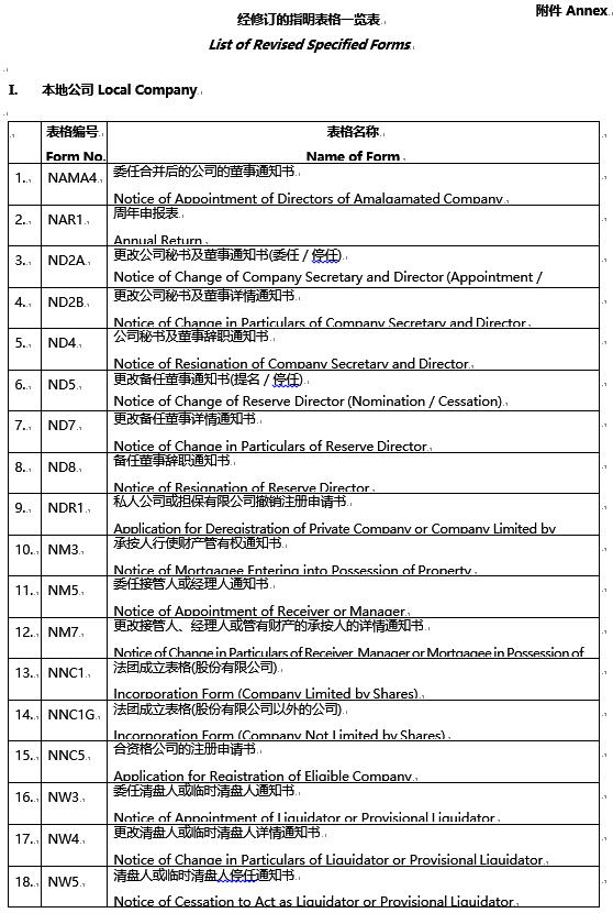 為實施新查冊安排的第二階段,公司注冊處處長(下稱「處長」)已修訂26款與申報受保護數(shù)據(jù)有關(guān)的表格,由實施日期起開始使用。經(jīng)修訂的指明表格已于2022年6月24日于憲報刊登(第3130號政府公告及第3168號政府公告),經(jīng)修訂的表格一覽表載于附件。
