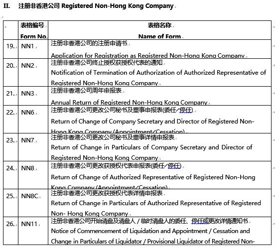 由實施日期起,香港公司注冊處只接納經(jīng)修訂的指明表格以辦理登記,香港公司注冊處不再接 納有關(guān)指明表格的現(xiàn)行版本,并會退回給提交人。