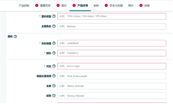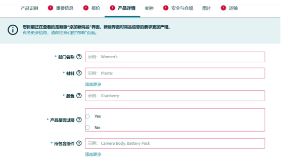 從12月1日起,賣家在上述品類新增商品信息時(shí),都需要為屬性提供一個(gè)有效值(例如顏色,尺寸),否則商品將不會(huì)添加到目錄中。