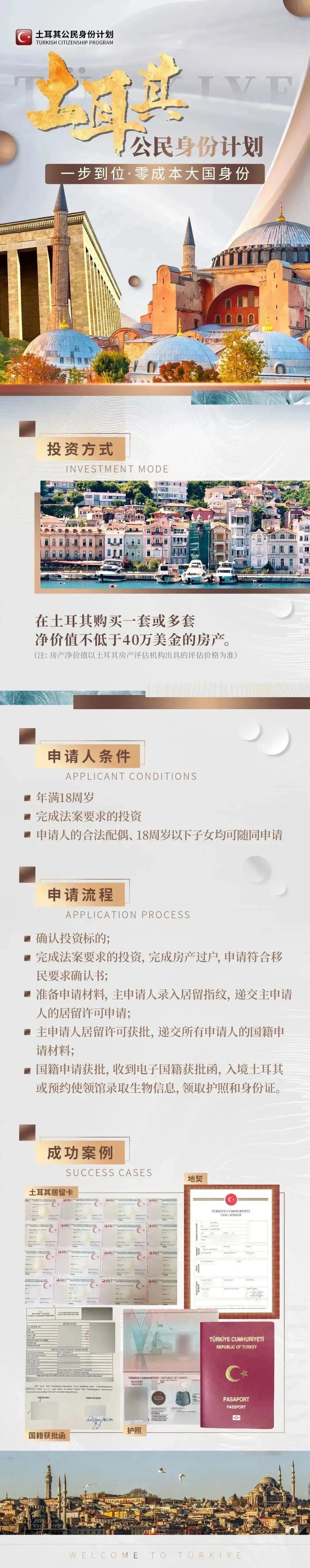 投資入籍法案頒布,海外人士購買100萬美金房產可獲得土耳其公民身份。
