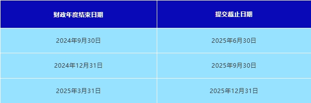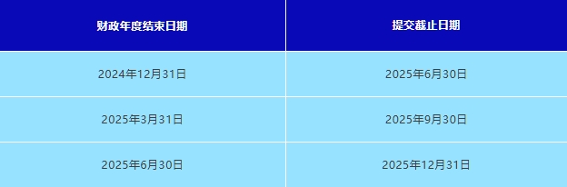 1. 年度申報(bào)表 - 財(cái)政年度結(jié)束后9個(gè)月內(nèi)