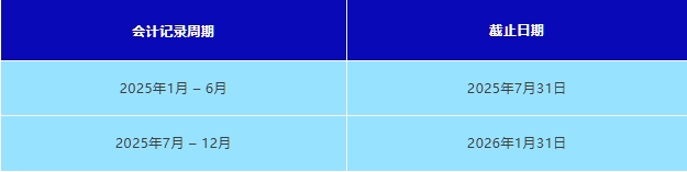 1. 半年度會(huì)計(jì)記錄 – 上半年截止于七月,下半年截止于次年一月