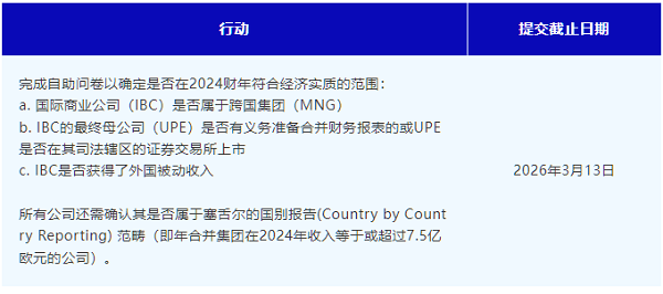 根據(jù)塞舌爾商業(yè)稅法(Seychelles Business Tax Act),所有在報(bào)告期間活躍的塞舌爾公司,需向塞舌爾稅務(wù)局(Seychelles Revenue Commission)報(bào)告其在2024財(cái)年是否符合經(jīng)濟(jì)實(shí)質(zhì)的范圍。