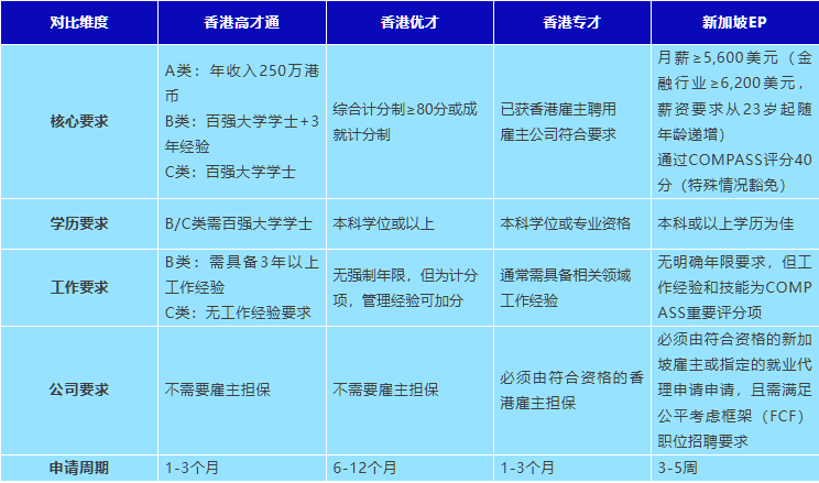 香港和新加坡人才簽證的核心特點(diǎn)